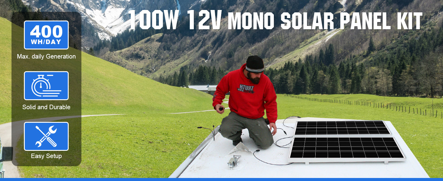 ECO-WORTHY 100 Watt 12V Mono solar panel is fully weather proof and professionally made with high quality components. 25-year linear power guarantee.