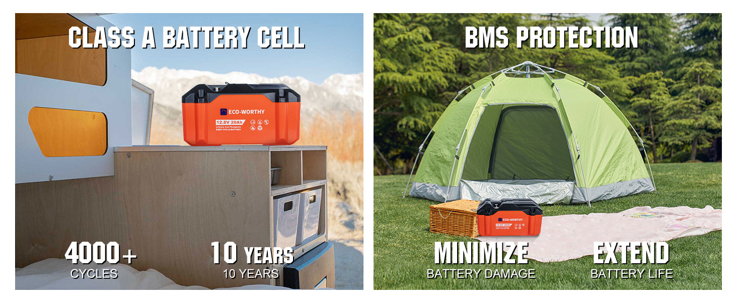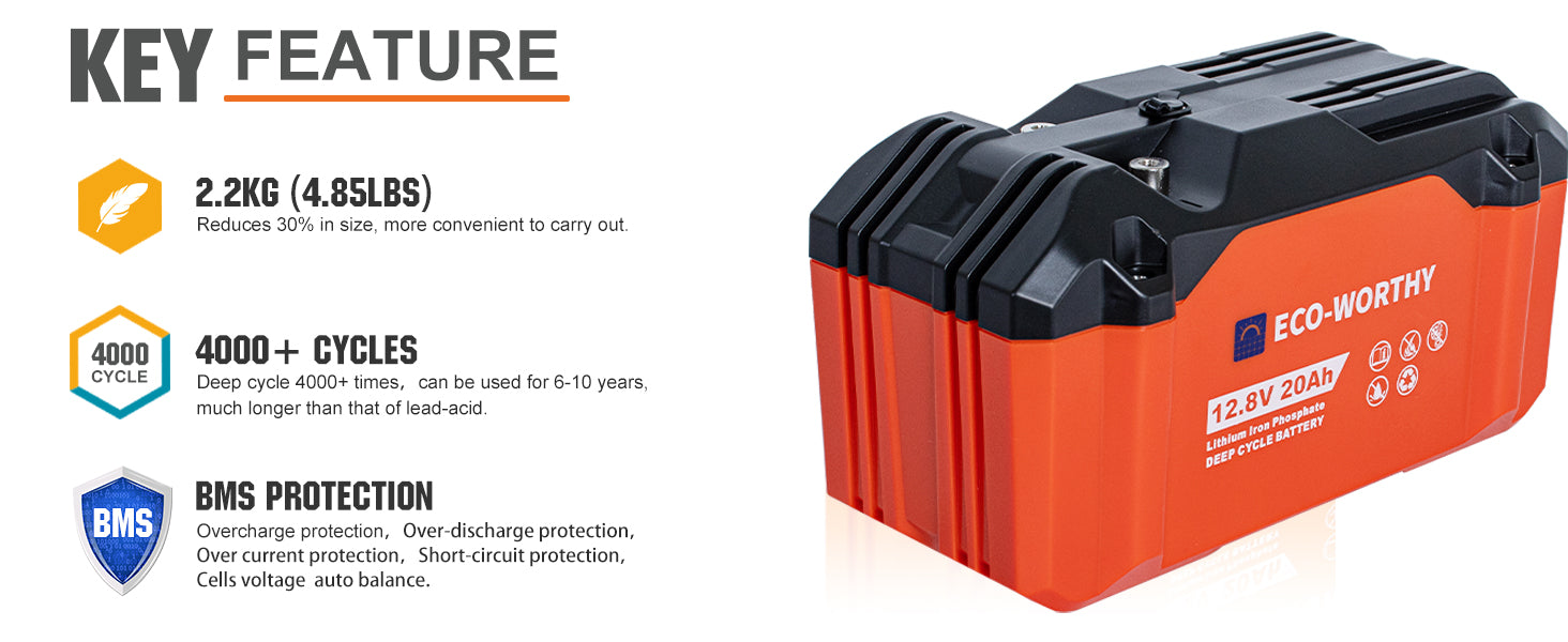 ·Comprehensive Protection: Built-in BMS protects the battery from overcharge, deep discharge, overload, overheat, short circuit and keeps battery cell balance.