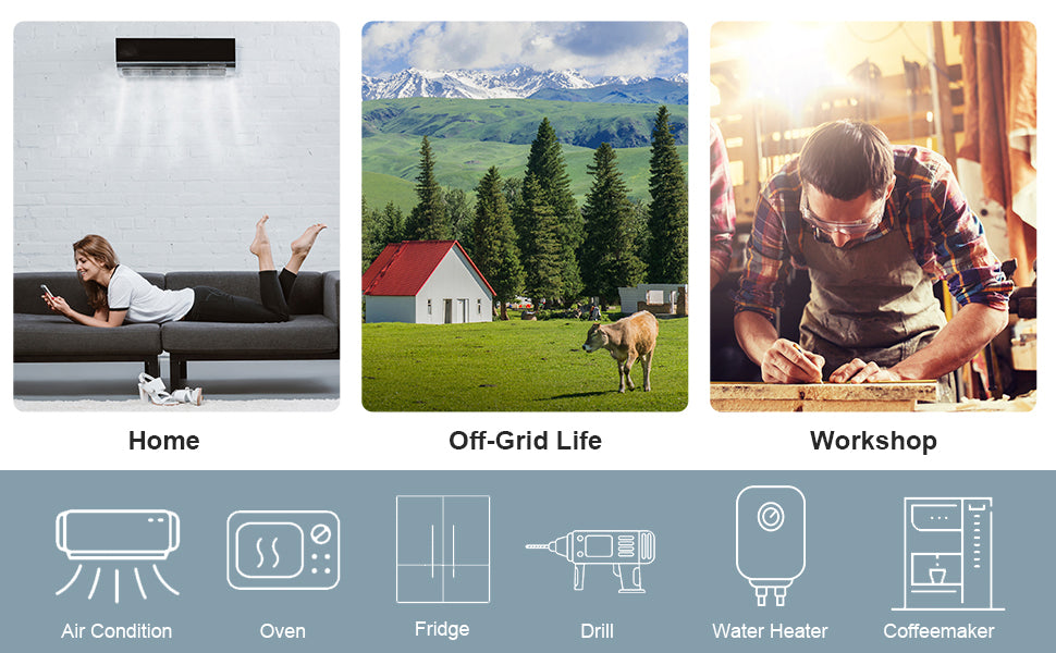 ·Intelligence: Designed with a LCD screen and 3 LED indicators for dynamic display of system data and operating status. ON/OFF rocker switch for AC output control. Power saving mode available to reduce no-load loss. Intelligent variable speed fan to efficiently dissipate heat and extend system life.
