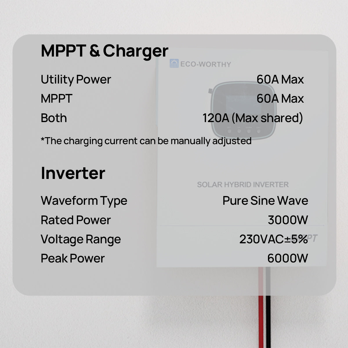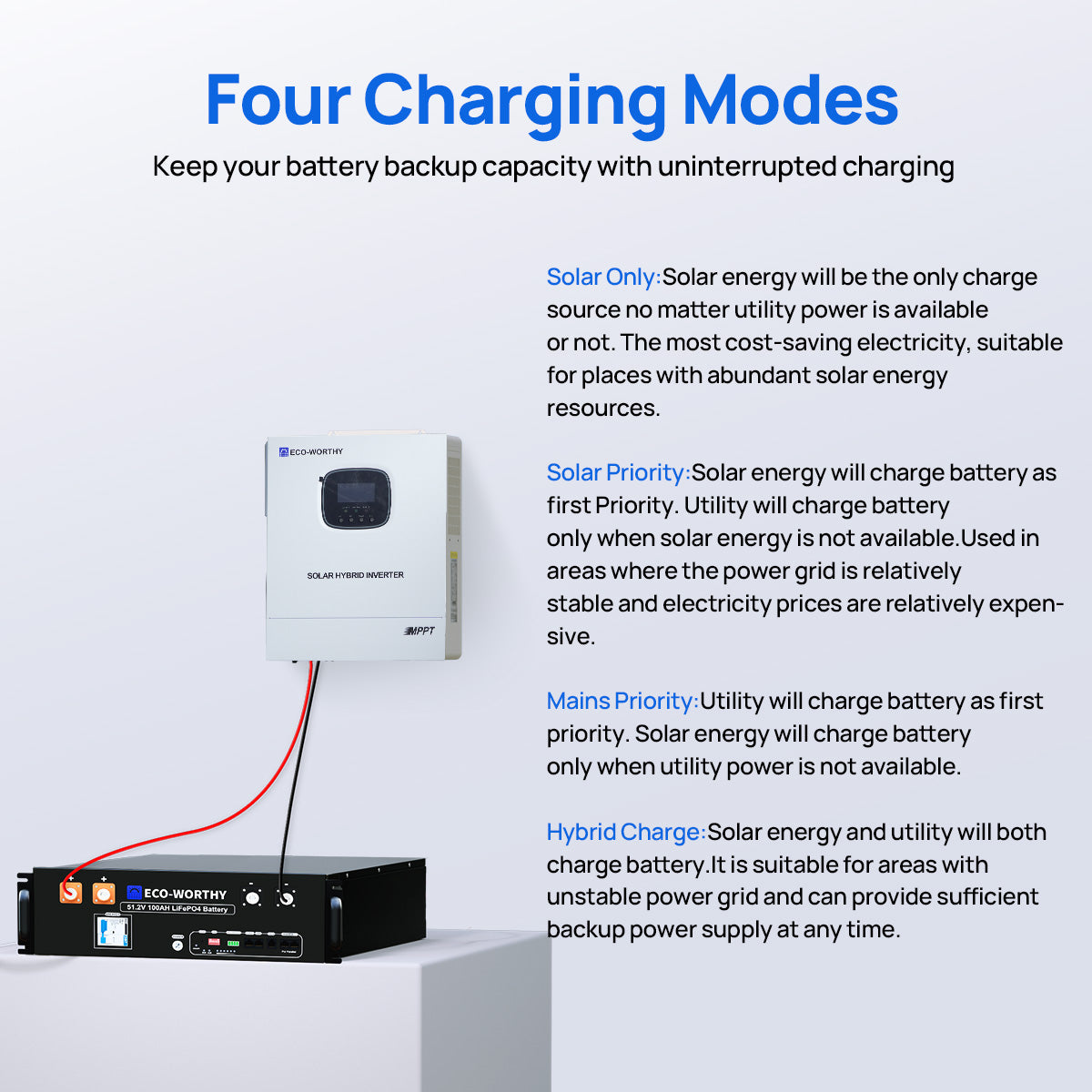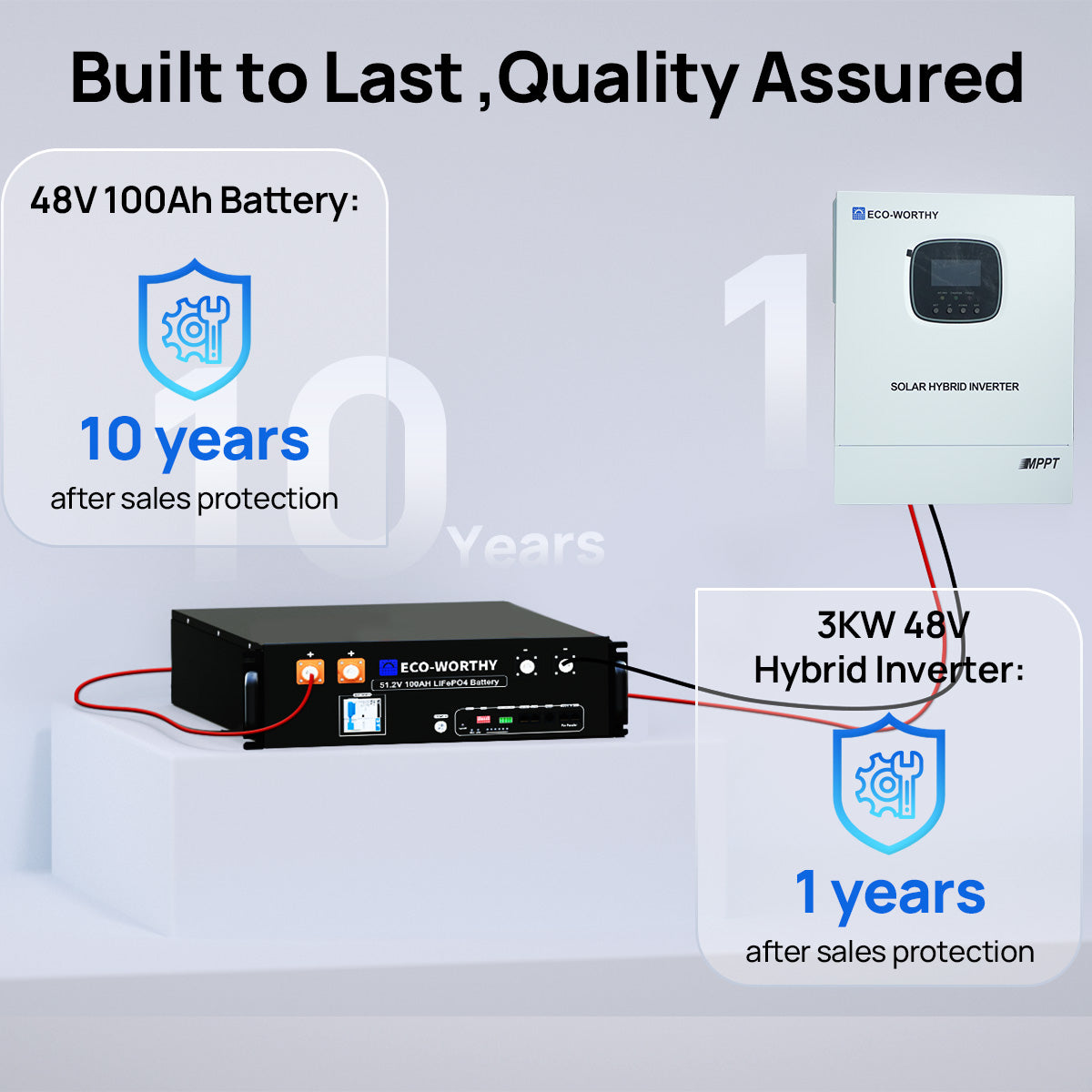 ECO-WORTHY 5.12KWh Home Backup Power With 48V 100Ah LiFePO4 And 3000W 48V Hybrid Inverter