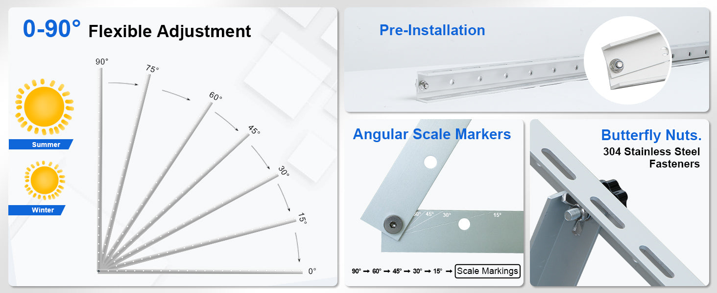 ·Easier Assembly: Are you still worried about not knowing which screw matches which bracket? ECO's newly upgraded 45 bracket has already pre installed the main part of the bracket. After receiving the bracket, you only need to assemble it according to the instructions.
