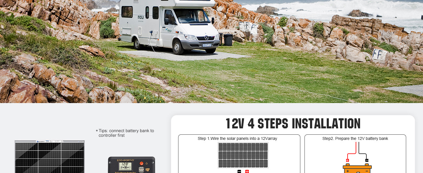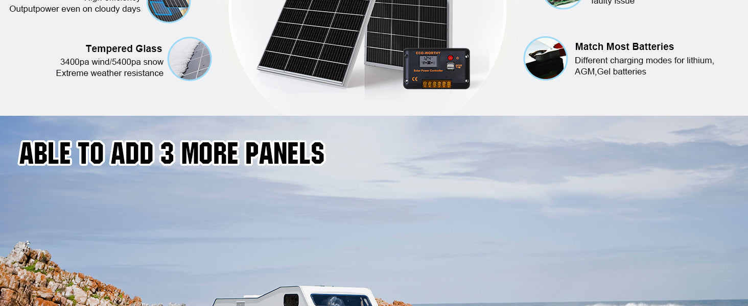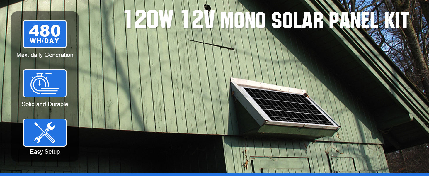 ECO-WORTHY 120 Watt 12V Mono solar panel is fully weather proof and professionally made with high quality components. 25-year linear power guarantee.