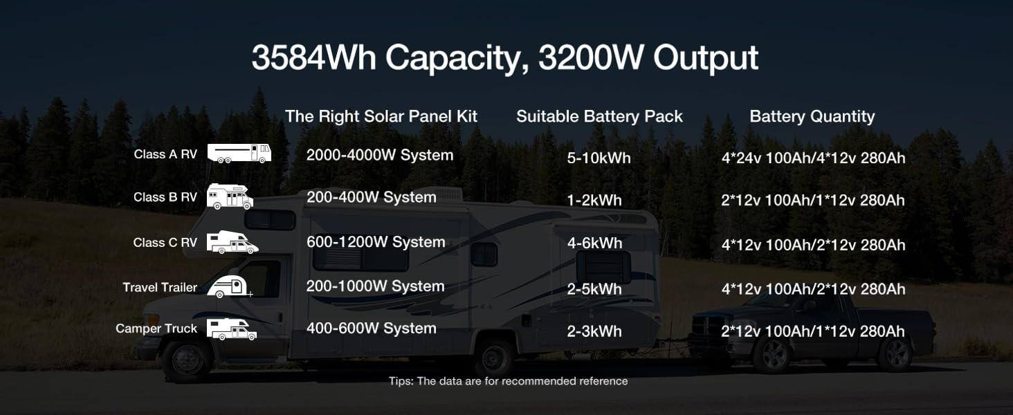 [High Capacity & Powerful Performance] – 3584Wh of usable energy with fast charging support and 200A continuous discharge. Perfect for RVs, boats, generators, off-grid solar systems, and backup power. (Note: not for use as a car starter battery.)