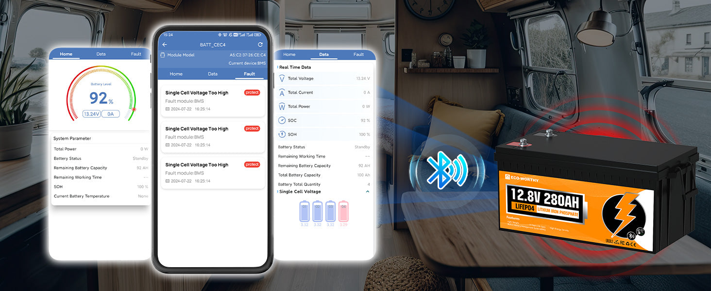 12V 280Ah LiFePO4 Lithium Battery with Bluetooth and Low-Temp Protection