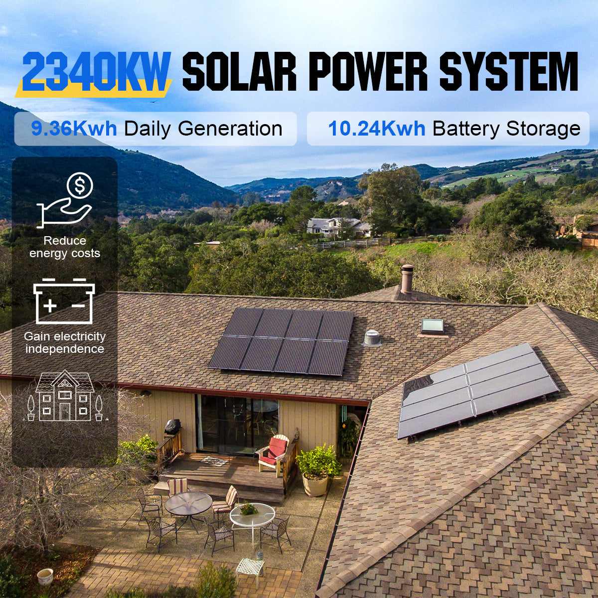 ECO-WORTHY 2340W 48V MPPT Solar Kit can be used for several different purposes, including homes, cabins, etc. Whatever the kit is used for, you can rest assured that you are purchasing a quality system. If you have any questions regarding this product, please contact us serviceuk@eco-worthy.com.