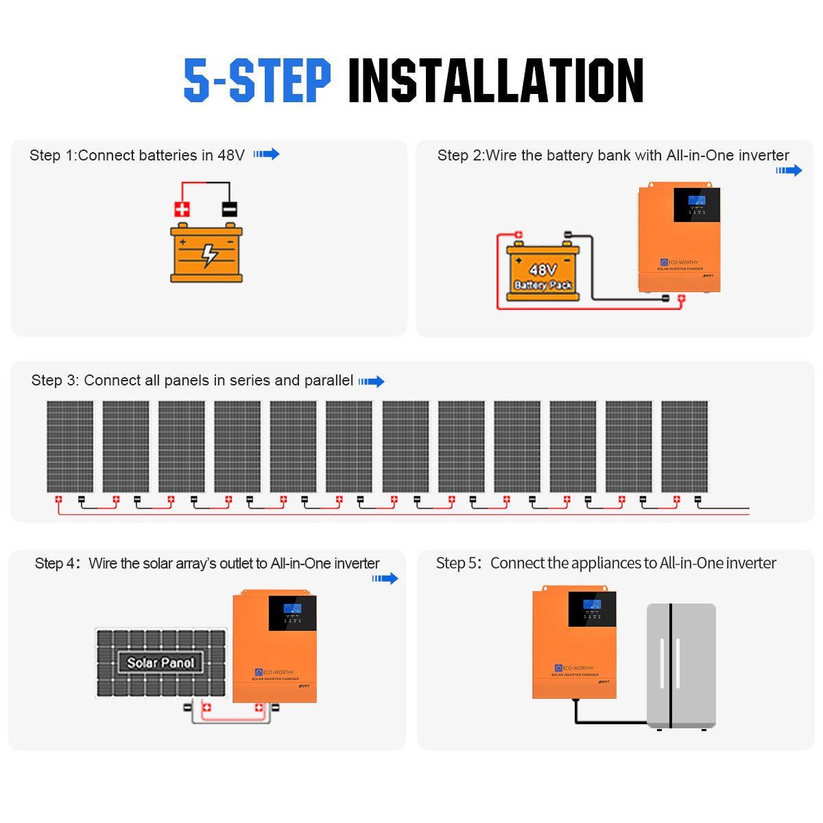 1x All-in-one Inverter(5000W 48V Inverter+80A MPPT Controller)