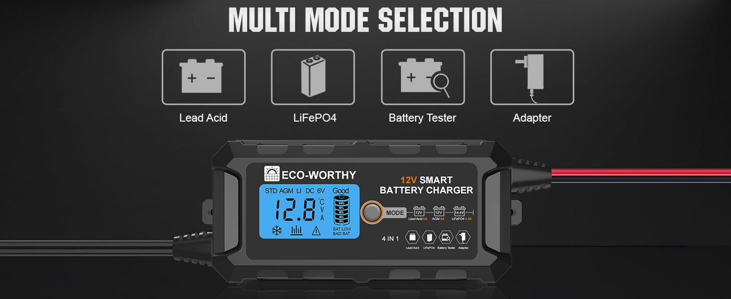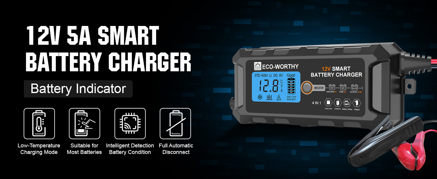5A & 10A 12V Smart Battery Charger with LCD Display for Lithium (LiFePO4) Batteries