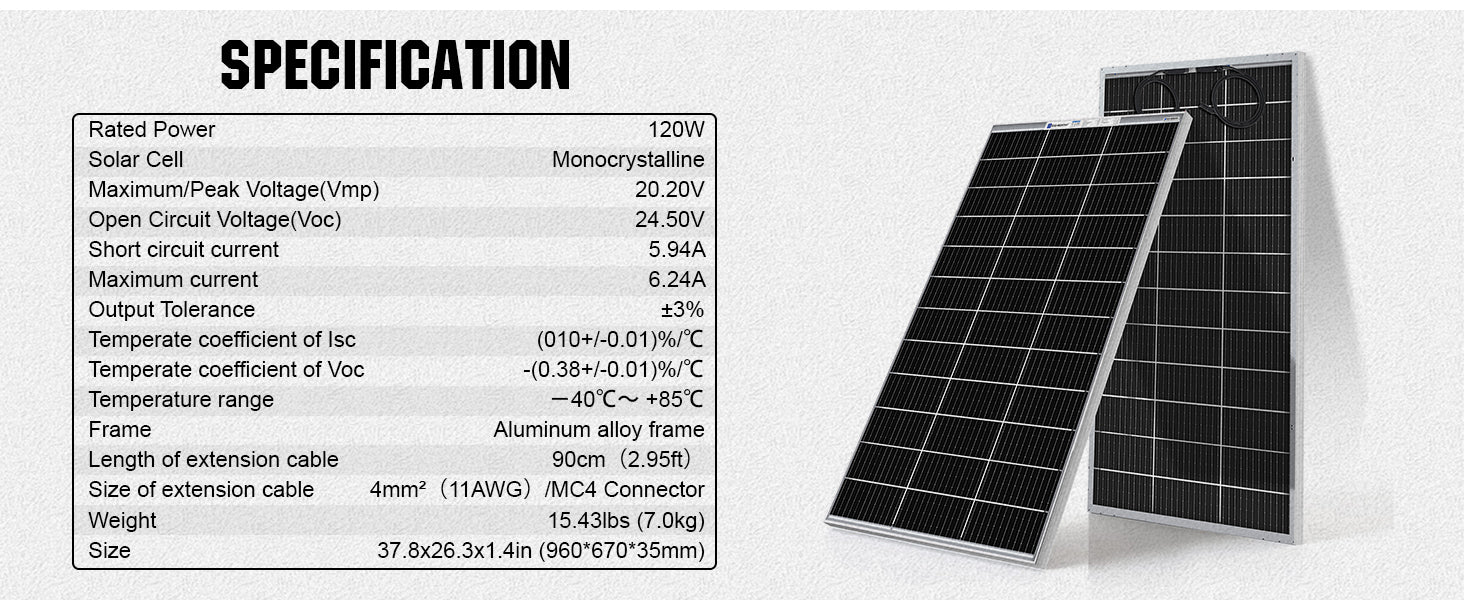 Rated Power: 120W | Solar Cell: Monocrystalline |