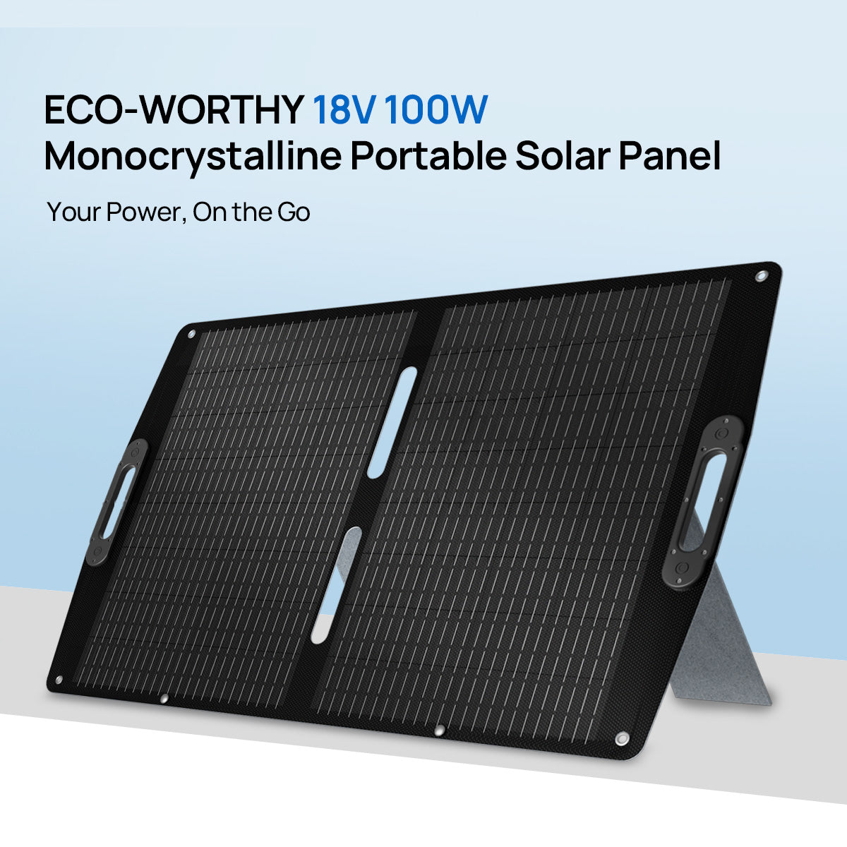 The Eco-Worthy 100W portable solar panel delivers reliable off-grid power with high-efficiency monocrystalline cells. Foldable, lightweight, and equipped with multiple connectors (XT60/DC8020/DC7909), it’s perfect for camping, RV trips, backpacking, and outdoor adventures. Durable ETFE coating ensures long-lasting performance in all weather conditions.