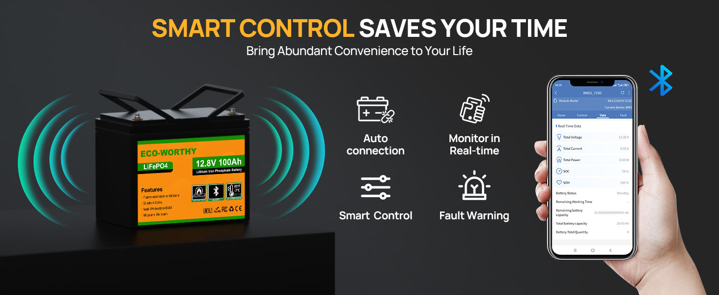 [DIY & Easy Troubleshooting] – Supports 4S4P battery banks (1.28–20.48 kWh). App shows battery status and faults instantly.
