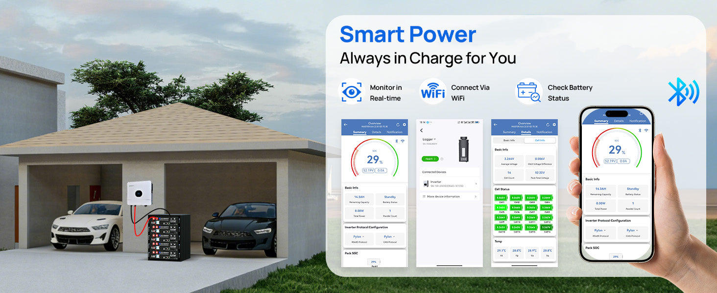 [Expandable & Efficient] – Parallels up to 32 batteries (163.84kWh), Time-of-Use charging for cost savings.