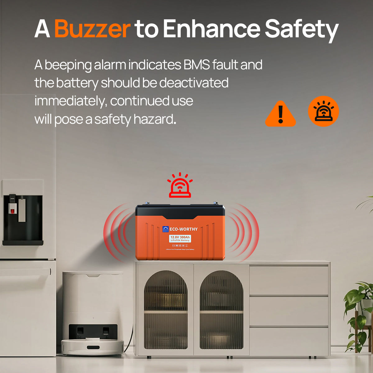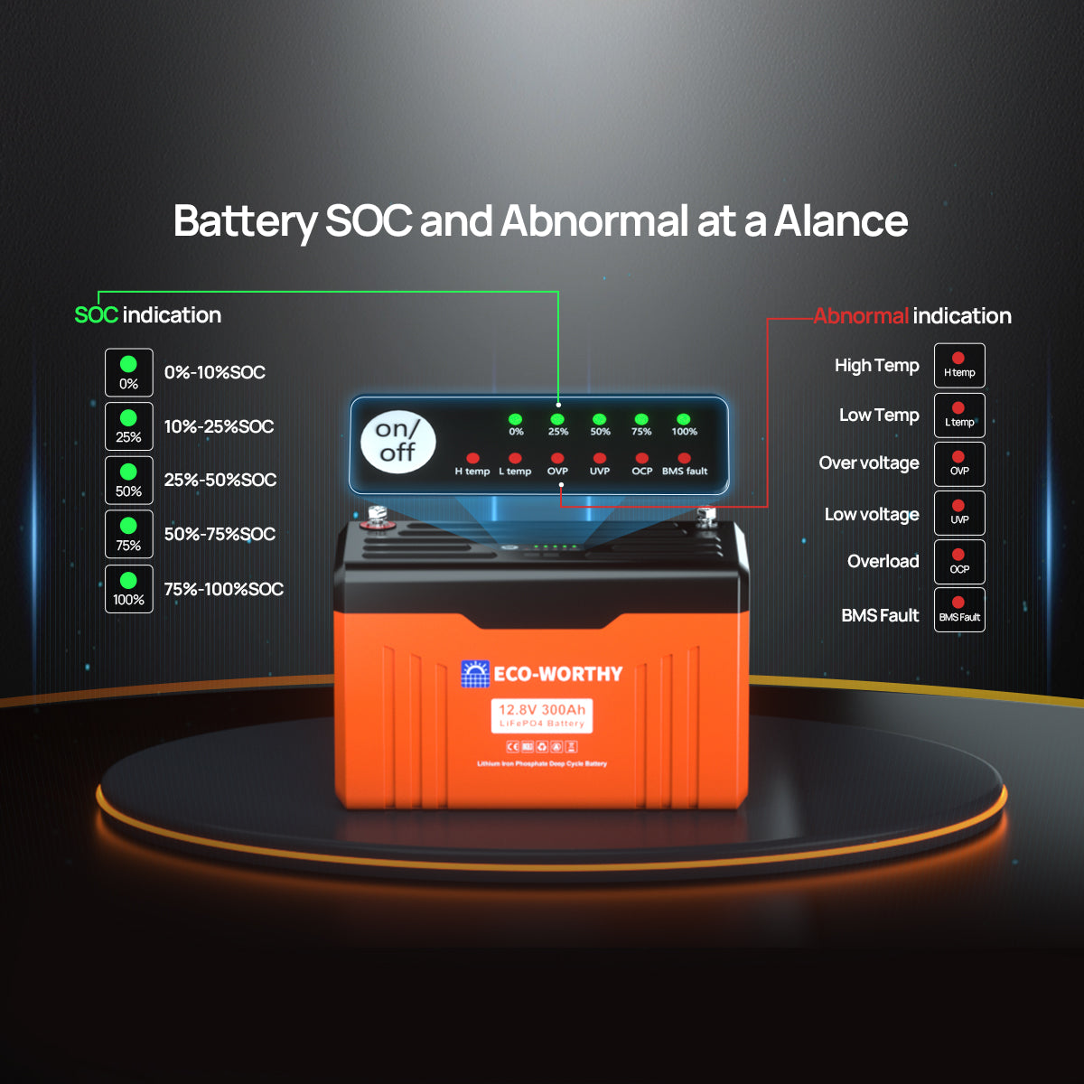 [Quickly Troubleshoot Battery Errors] : ECO-WORTHY 12V 300AH Bluetooth lithium battery has 3840wh of energy and supports 4P4S expansion to 61.4kWh. The buzzing alarm reminds you of battery failure. You can use the ECO-WORTHY APP to check the battery status and quickly troubleshoot errors.