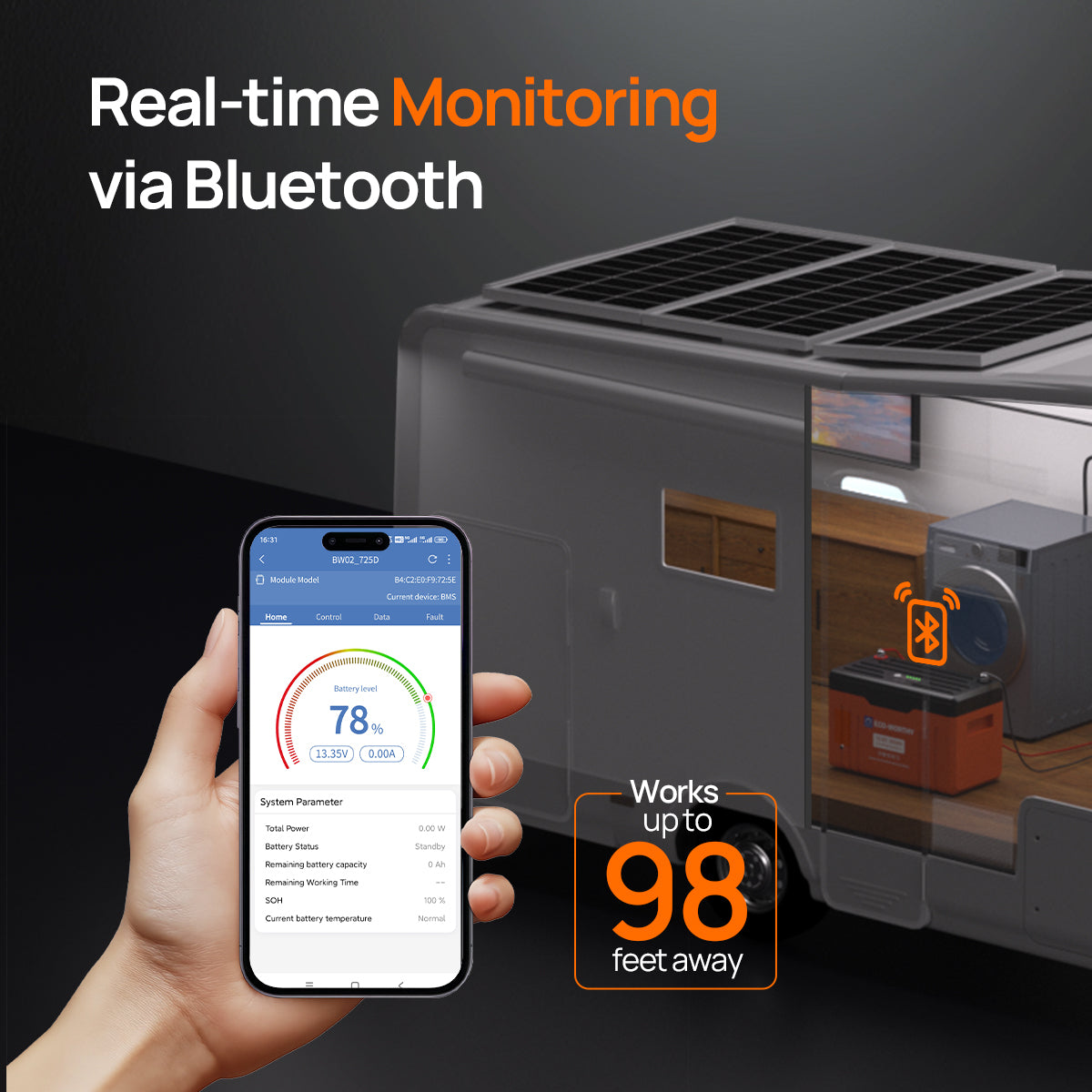 [Remotely Monitor and Control] : Features Bluetooth , you can remotely monitor the battery status through the ECO-WORTHY APP, ensuring real-time access to vital information.